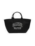 Этот вместительный шопер от GANNI - идеальный аксессуар для повседневной жизни. Он сочетает в себе лаконичный, современный дизайн и заботу об экологии. Изготовленный из 100% хлопка, он не только надёжен и практичен, но и является частью осознанной моды. Просторное внутреннее отделение и прочные ручки делают эту сумку незаменимой для покупок, работы или учёбы. Фирменный логотип GANNI и вдохновляющая надпись “Have a nice day! Please recycle” подчёркивают философию бренда. Этот шопер - идеальный выбор для тех, кто ценит комфорт, стиль и заботится о планете.