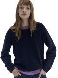 Шерстяной свитер с круглым вырезом - это вечная классика и незаменимая база для холодного времени года. Высокое содержание шерсти обеспечивает тепло и невероятный комфорт. Темно-синий цвет - это универсальная и благородная база, которая всегда выглядит элегантно. Этот свитер - просто топчик для создания уютных, элегантных и базовых луков.