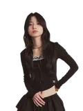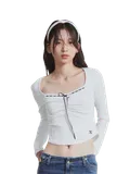 Lace Shrring Squear Neck Long Sleeve