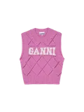 Вязаный жилет от GANNI - идеальный способ добавить в свой гардероб уют и оригинальность. Сочетание органического хлопка и полиамида делает его приятным на ощупь. Яркий крупный логотип придаёт этому жилету особый шик. Лаконичный дизайн без рукавов позволяет создавать многослойные образы: носите его поверх рубашки, футболки или водолазки, чтобы создать уникальный и модный образ. Этот жилет станет незаменимым элементом вашего стиля, который подчеркнет вашу индивидуальность!